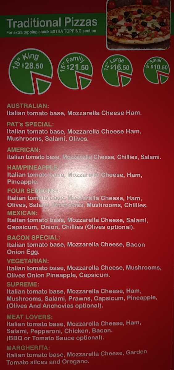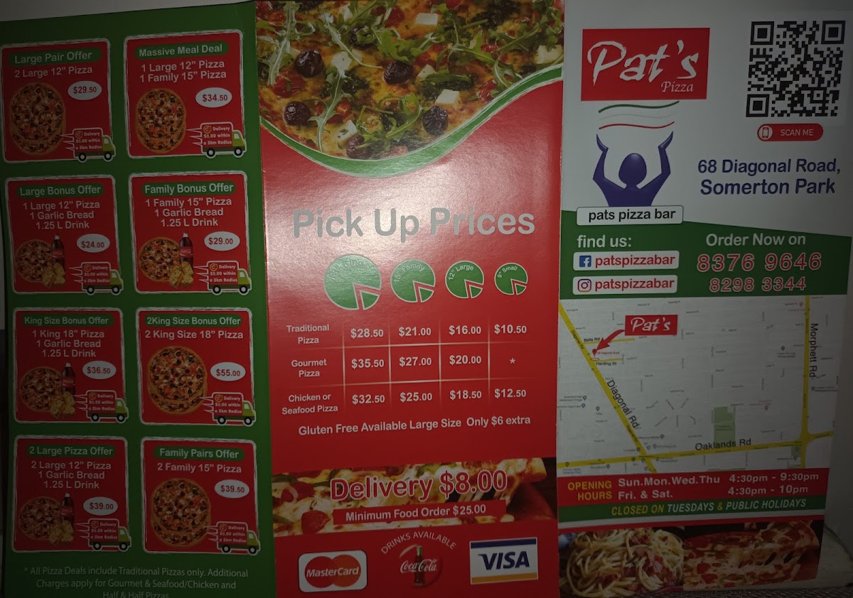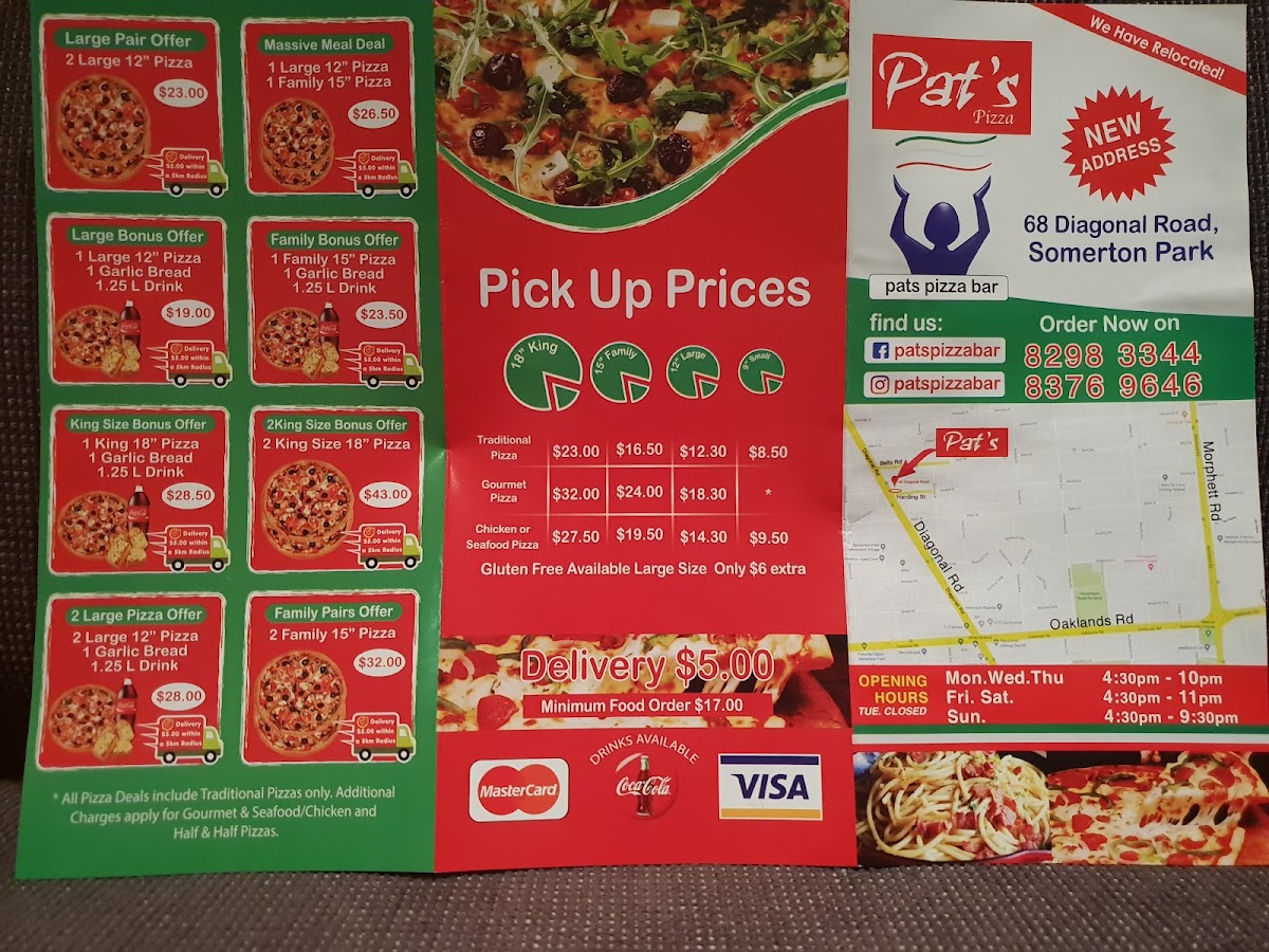 Welcome to Pat's Pizza Bar, where a delightful fusion of flavors awaits you at 68 Diagonal Rd, Somerton Park. This vibrant eatery has quickly become a standout in the local culinary scene, drawing pizza enthusiasts looking for authentic taste without the excess.